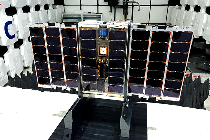 Ku-band (10.7 - 12.7 GHz for transmit and 14.0 - 14.5 GHz for receive) is substantially higher than traditional nanosatellite frequencies, which are often around 2 GHz for bi-directional communications. This offers increased available bandwidth to support larger data applications.